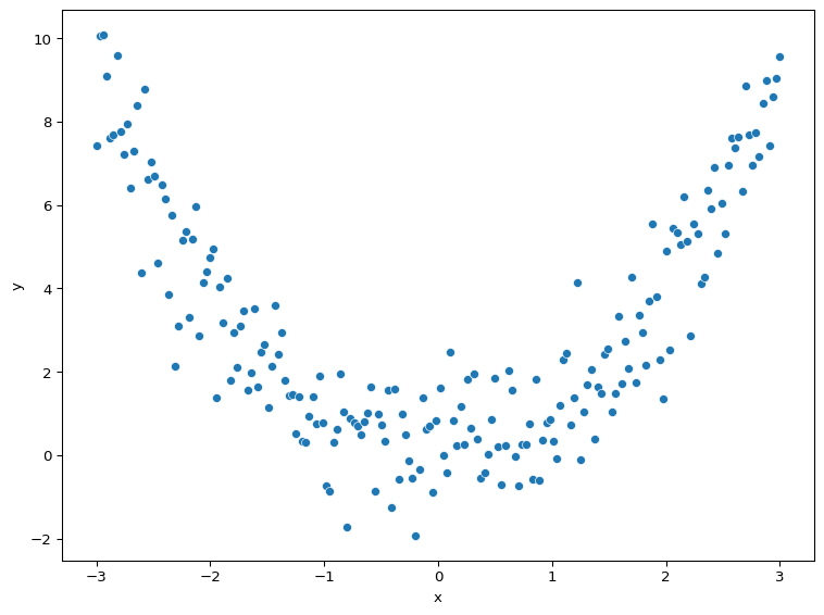 A correlation coefficient will miss strong non-linear relationships in data. We can demonstrate this by simulating a parabolic relationship (a u-shaped curve) between two variables, \(x\) and \(y\), where \(y\) is a function of \(x\).