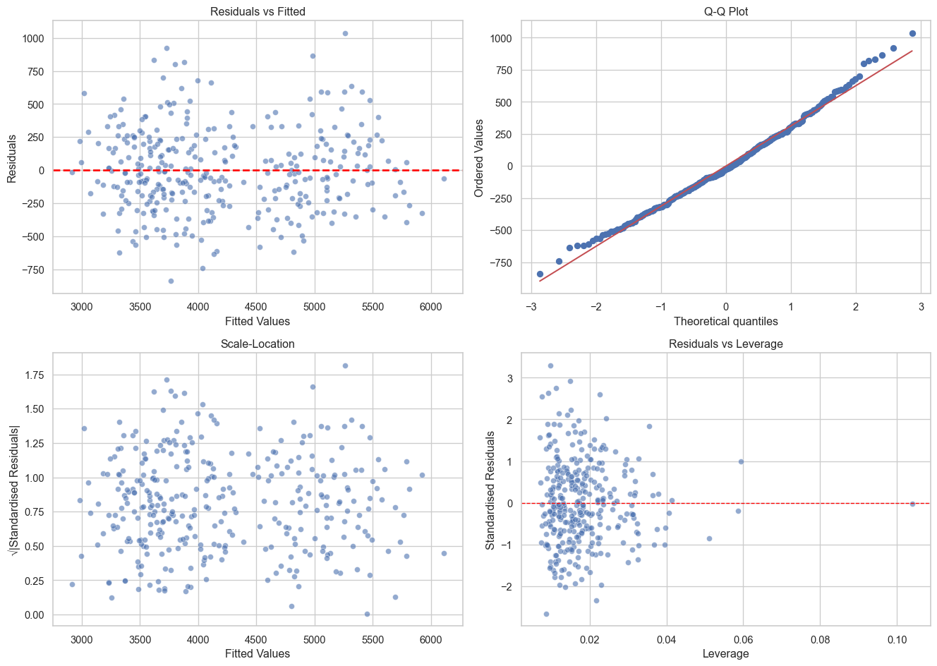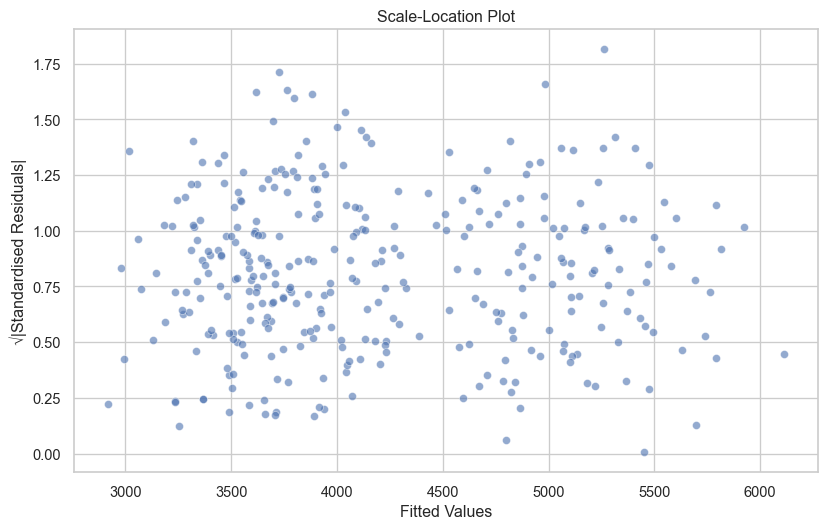 axes[1, 0].set_ylabel('√|Standardised Residuals|')