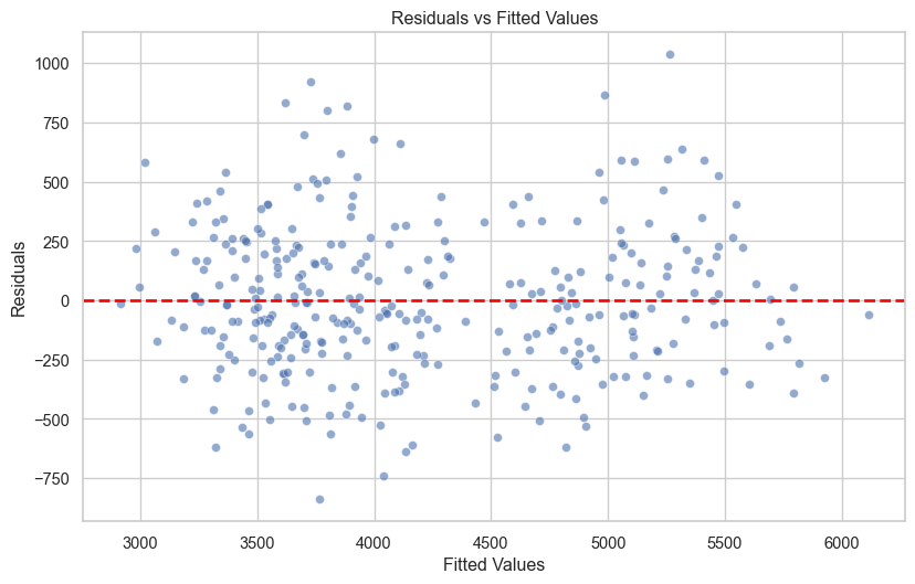 sns.scatterplot(x=fitted, y=residuals, alpha=0.6, ax=axes[0, 0])